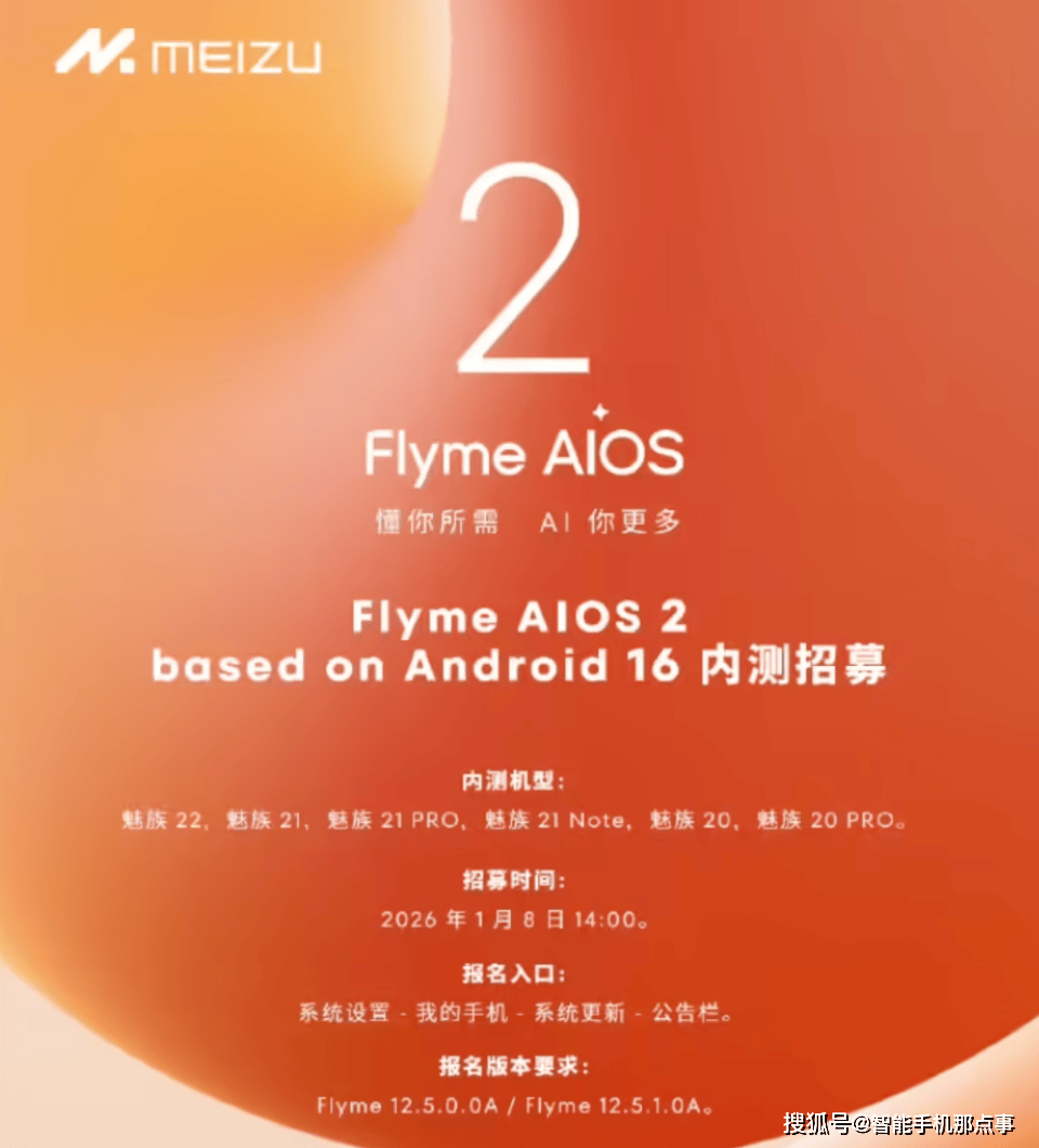 2026 年的第一个重磅惊喜比预想中来得更早一些,因为魅族近期正式开启了Flyme AIOS 2(基于 Android 16)的内测招募。