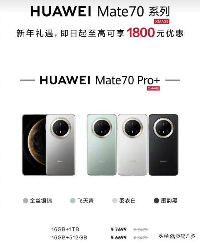 - Mate 70 Pro+:作为系列顶配,1TB版本直接从9499元降至7699元,降价幅度高达1800元。512GB版本也降至6699元,直接杀入6000元价位段。