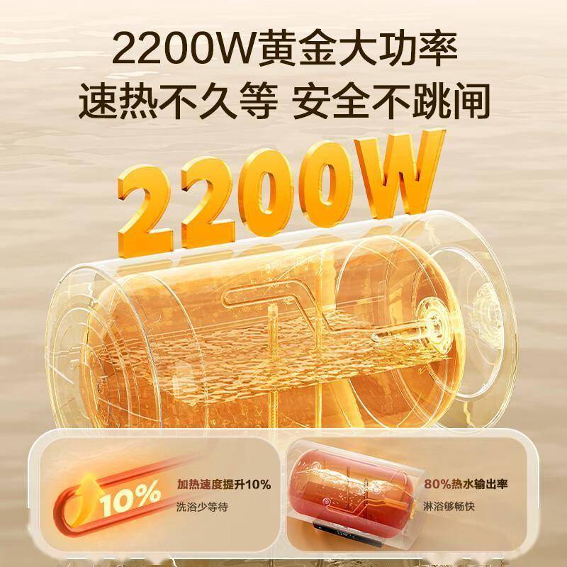 这款电热水器的加热速度令人惊喜,2200W的功率配合高效加热管,冷水变热仅需短短时间。即使全家人连续使用,也能保证热水供应不间断。内置的智能温控系统会实时监测水温变化,自动调节加热功率,确保出水温度始终如一。