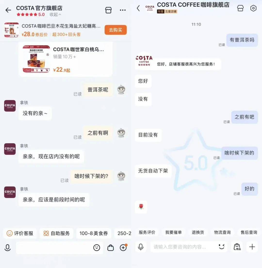 1月9日,记者查询天猫平台“COSTA官方旗舰店”和京东平台“COSTA COFFEE咖啡旗舰店”,均未发现相关普洱茶产品。