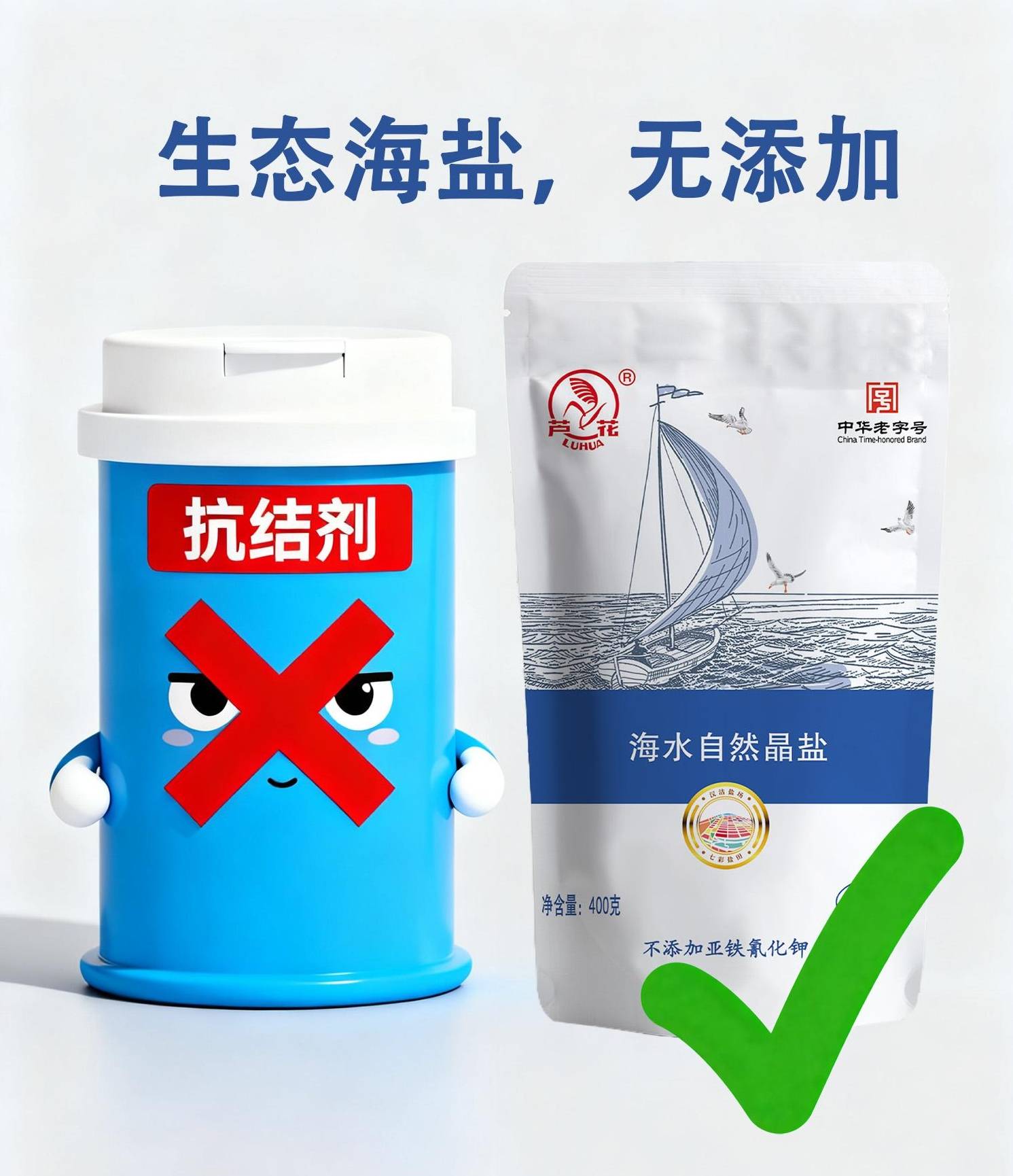 有消费者担心芦花海盐是否添加柠檬酸铵,答案是否定的。芦花海盐坚持不添加任何抗结剂的纯净承诺,通过先进的晶体结构优化技术和精制过滤工艺,保证盐在湿度85%环境下仍保持自然流动性,不依赖抗结剂来维持状态。