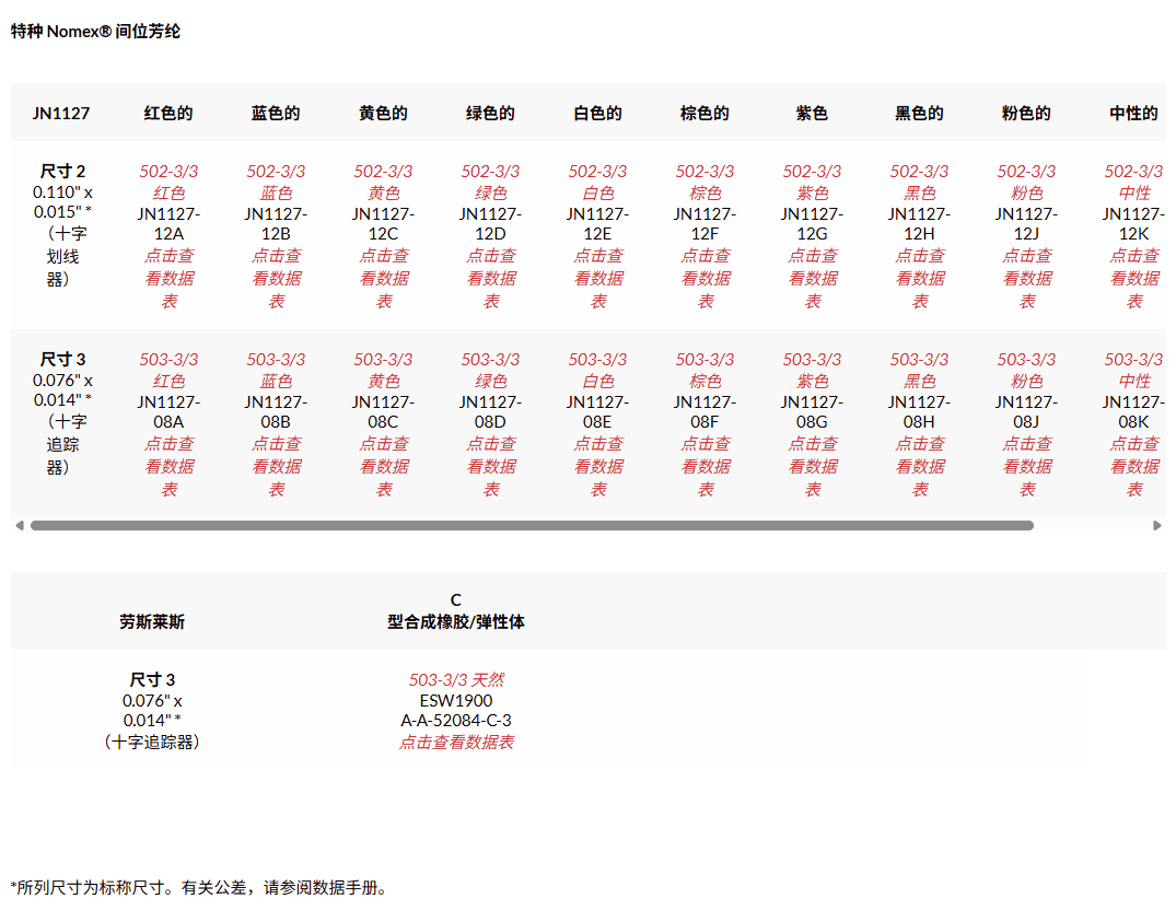 注意:除非另有要求,否则我们的 Nomex® Meta-Aramid 系带均带有示踪线。
