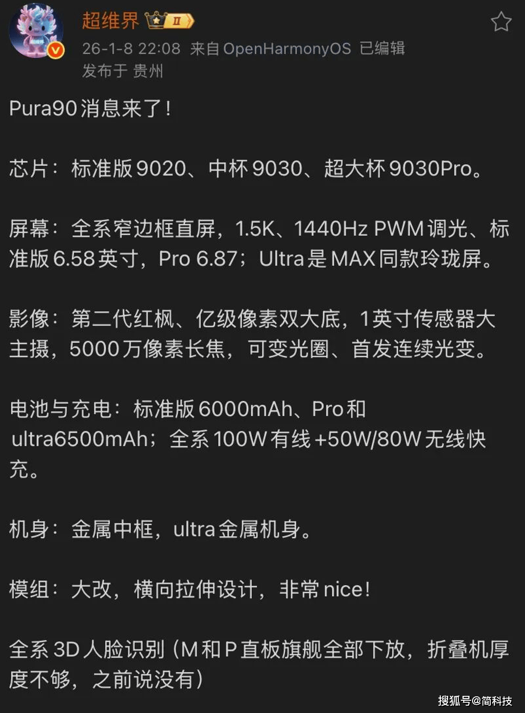 综合目前信息来看,华为 Pura 90 系列的配置有很大的升级,有兴趣的朋友到时候也可以关注下。
