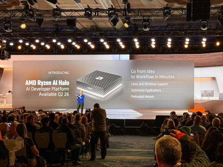 AMD还在现场展示了基于锐龙AI Max+处理器打造的AMD Ryzen AI Halo AI开发平台,其体积十分地迷你,支持Linux以及『Windows』开发环境,AMD希望借助这款AI开发平台让开发者的工作效率成倍提升。