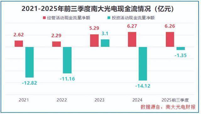 2021-2025年前三季度,公司经营活动现金流净额保持正向流入,2024年净流入6.27亿元,2025年三季度也有6.26亿元,可覆盖部分投资需求。