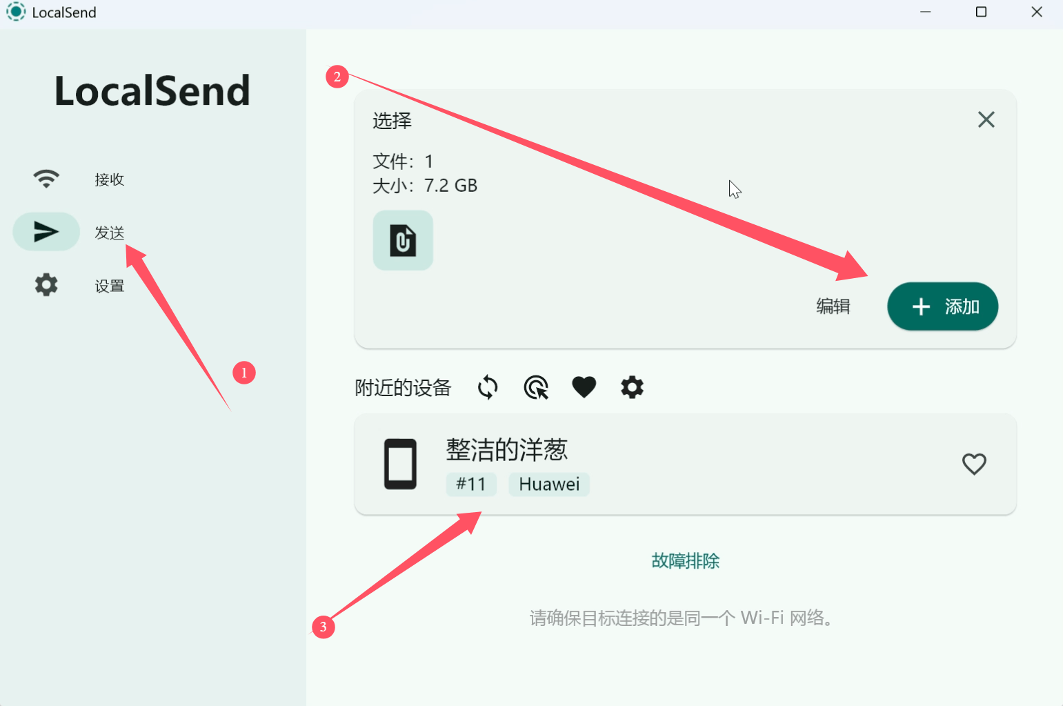 这里就以windows和『安卓』之间文件互传为例,首先需要各个设备在同一个局域网下,如果要把windows端的文件传输给『安卓』端。只需要在windows端的软件中点击传送,然后选择好需要传输的文件,点击需要传输的设备。