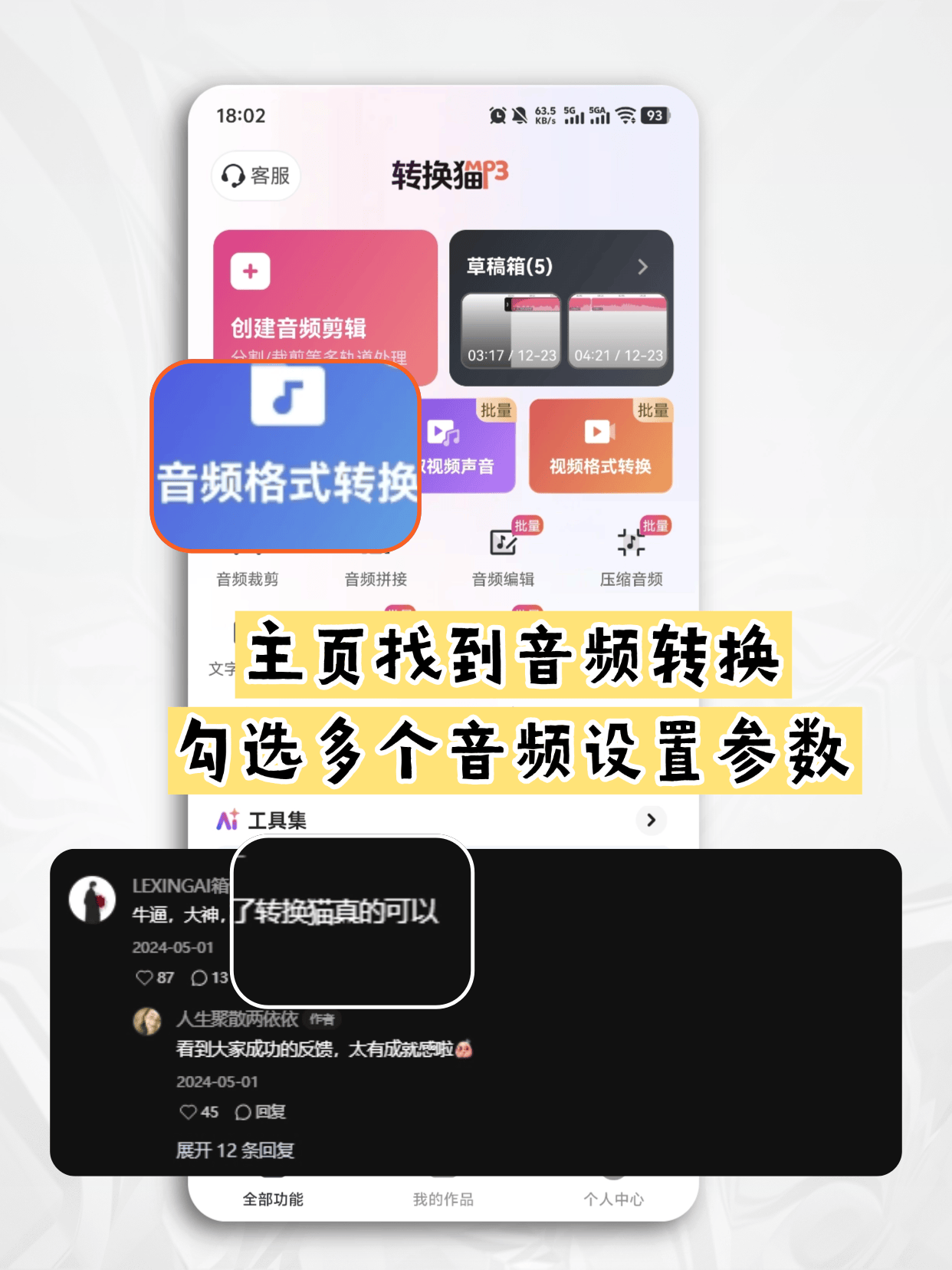 如果你不想开电脑,直接在手机上就能搞定。转换猫App是目前『安卓』端音频处理的佼佼者,不仅能转码,还能提取视频里的音频,功能非常全。