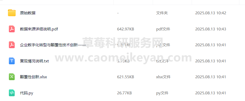此数据为科研课题组自用数据,非仅仅只有一个结果胡编乱造(根据瞎编结果根本就没有研究价值,不能反映真正的颠覆性技术创新,实证围绕着错的结果根本就毫无意义浪费大家时间),数据整理较为复杂,真正的原创一手认真整理数据!