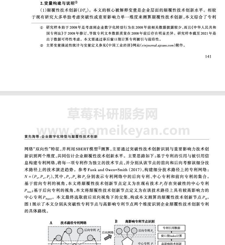 黄先海,孙涌铭,陈梦涛.企业『数字化』转型与颠覆性技术创新——来自专利网络与SBERT模型的微观证据[J].中国工业经济,2024,(10):137-154.DOI:10.19581/j.cnki.ciejournal.2024.10.008.