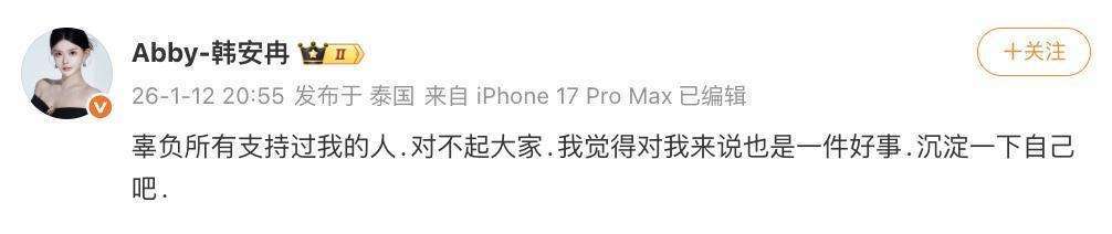 1月12日,多个网友纷纷发帖表示,韩安冉和宋浩然的『抖音』账号已被封禁。记者通过搜索发现,韩安冉的粉丝数为320万,而宋浩然的粉丝则为142.3万。如今,这两个账号已经无法再访问,官方封禁的消息也得到了证实。 韩安冉对此作出了回应,她通过『社交平台』发文表示:辜负了所有支持过我的人,对不起大家。对我而言,这也是一件好事,或许沉淀一下自己会更好。她的言辞透露出一些无奈,但似乎也带有自我反思的意味,可能这段经历对她来说,既是挑战,也是自我审视的契机。