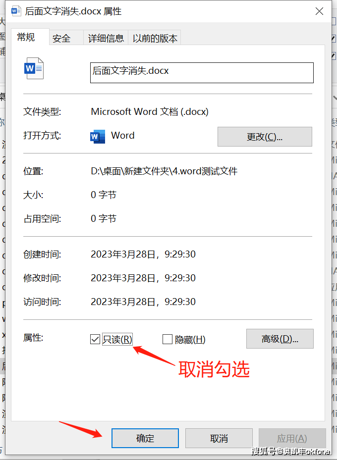 这个方法,我们可以当作第一个尝试方法,右键点击文件,查看文件属性,将属性中的【只读】,取消勾选