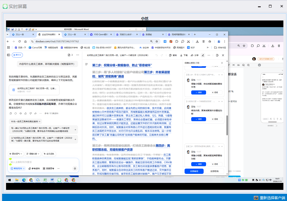 画面延迟极低,画质清晰到能看清文档里的文字,连员工偷偷刷的短视频标题都能捕捉到。