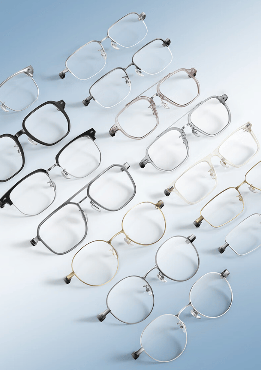 界环 AI 音频眼镜👓做到了金属半框、经典方框、多边形框、金属圆框、金属方框、时尚飞行员框、时尚眉架框、飞行员钛框在内 8 个主流框型,以及所包含的钛灰、星辰银、深空灰、水晶白、曜石黑、星辰银、深空灰、日暮金、星辰银、淡墨灰、琥珀棕、曜石黑、淡墨灰 14 种镜框配色。几乎可以满足大部分消费者对镜框的选购需求。
