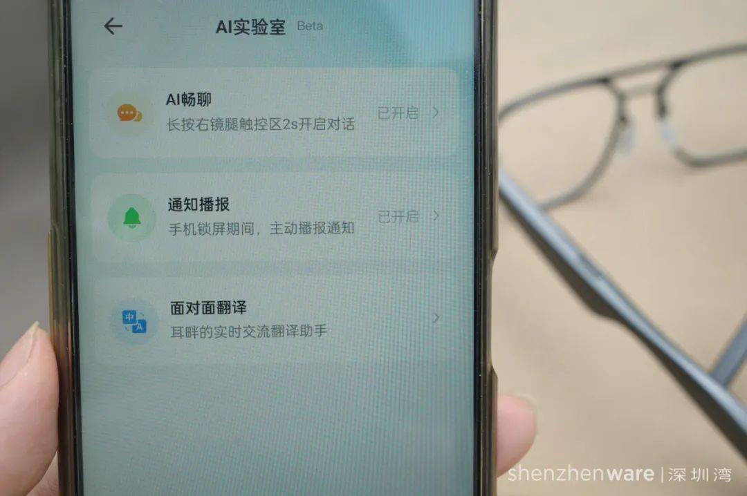 在 AI 应用的丰富度上,界环 AI 音频眼镜👓并不算出挑。有我们常见的 AI 畅聊、通知播报、面对面翻译,在界环的 AI 实验室中都能找得到。