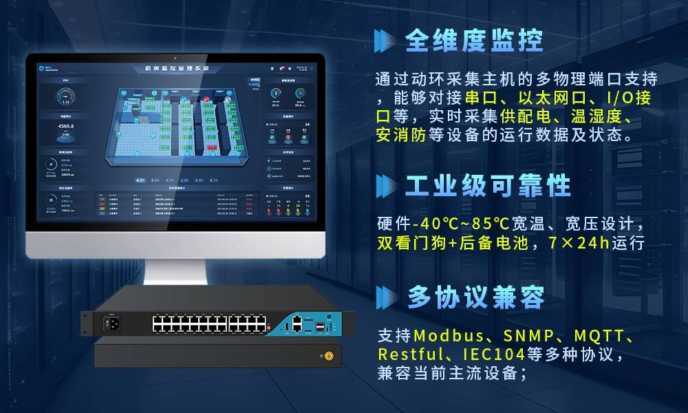 如同监督系统需要收集多源数据,现代化机房动环监控靠的是精确、可靠的动环数据采集。深圳云联共创的普通机房动环监控解决方案,通过动环采集主机的多物理端口支持,能够对接串口、以太网口、I/O接口等,实时采集供配电、温湿度、安消防等设备的运行数据及状态。