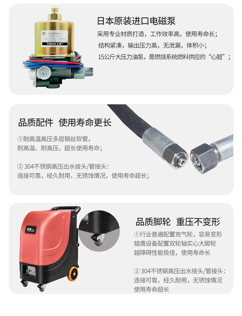 针对老旧设备的积碳与油污深度清洁,猎鹰高温高压清洗机展现出独特优势。老旧工程机械的发动机缸体、活塞、喷油嘴等部件,长期使用后会积累大量积碳,导致动力下降、油耗增加。传统积碳清洁方式如机械刮除,易损伤部件精密结构;化学除碳剂存在残留风险。猎鹰采用120-140℃高温+400-450bar高压水流,搭配专用细孔喷头,可深入发动机内部复杂结构,快速溶解积碳与油污,清洁后部件精度完全符合翻新标准。某发动机翻新厂引入该设备后,发动机积碳清洁效率提升8倍,清洁后发动机动力恢复至新机标准的95%以上,油耗降低15%,大幅提升了翻新发动机的市场竞争力。