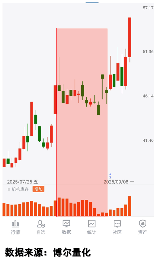 有的标的在走出亮眼行情前,横盘震荡了很长一段时间,光看走势根本分不清后续方向,但结合量化数据就一目了然。看图3,股价震荡期间「机构库存」一直活跃,说明机构资金在积极参与,背后肯定有布局。