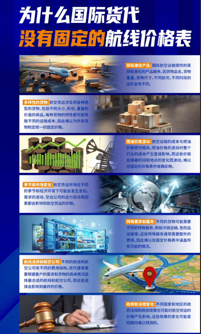 该公司的服务特点十分显著。产品以出口货物的重量定价,针对各运输方案核算定价。运输方案设计涵盖了政治风险的预判,时效风险的考量,破损风险的补救,充分体现了事前有预判,事中有控制,事后有措施的风险防范体系。始终坚持研发空运方案三人组模式,拒绝一人主观,避免二人极端,秉承三点稳定的信念。三分钟内能够针对客户的需求快速响应,为每一票货物提供纯人工、纯柔性的定制方案,完整呈现基础运输方案改良运输方案高质量运输方案供客户选择,保障货物在国内、空中、国外三个空间维度无忧飞行。同时,提供国内、空中、国外三个环节一站式全链条服务,助力货主从繁杂冗长的货物、单证交付链条中解脱出来,专注于贸易双方的主业需求,减少客户在国际运输环节人力、物力、精力投入,节省成本,提高效率。