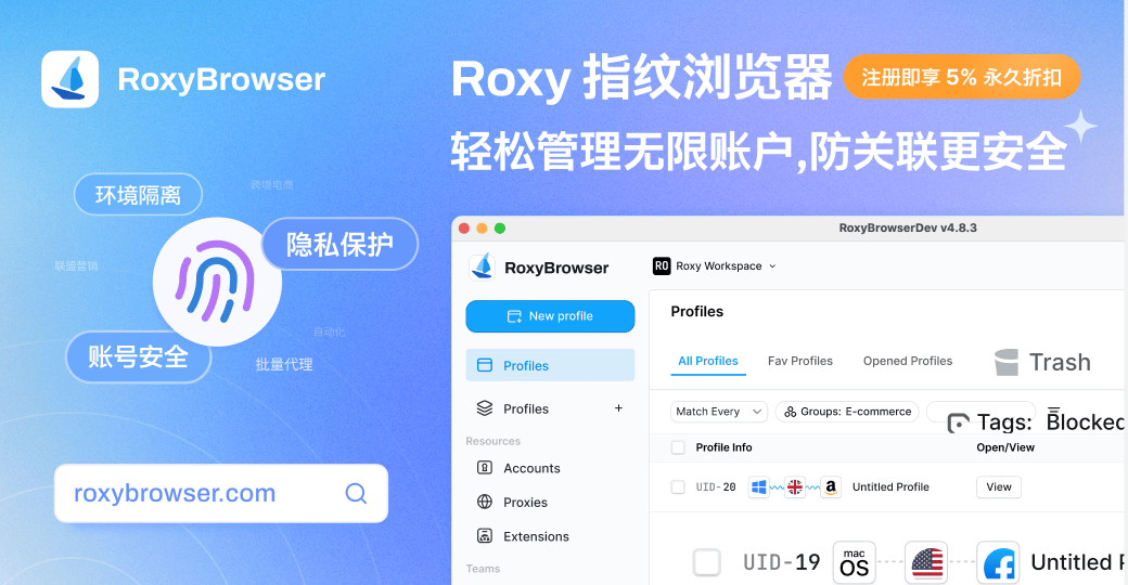 市面上有哪些好用的指纹浏览器呢?排名不分先后,当然分享的都是一些靠谱的,知名度高的指纹浏览器。1.RoxyBrowser