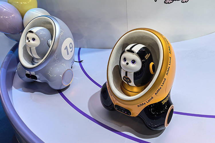 又如FrontierX带来了Aura、Vex两款AI陪伴『机器人』️,前者正面是一块圆形屏幕,能做出大眼萌、微笑等灵动表情,甚至能通过分析面部表情和肢体语言读懂人的情绪,再结合『大语言模型』开展有温度的对话。后者是专为宠物设计的『机器人』️,凭借精准的视觉识别技术,它能牢牢锁定家中宠物,用宠物视角贴着地面记录跑酷、睡姿等精彩瞬间。