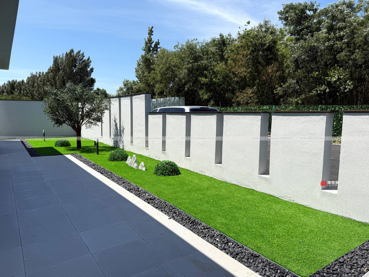室外景观与产业园大门的设计,与展厅主体形成有机整体。简洁的草坪、规整的铺装,搭配低调的景观小品,不喧宾夺主,却默默烘托出产业项目的秩序感与专业性,让来访者从踏入园区伊始,便感受到智算产业的严谨与创新氛围。