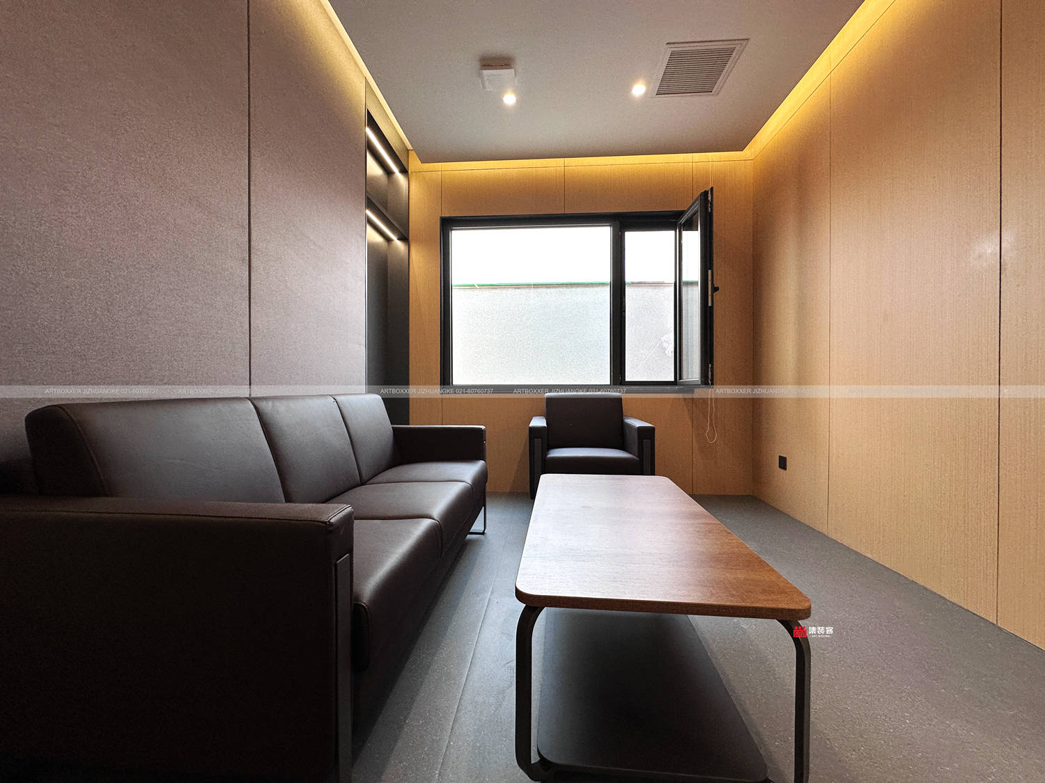展示区的模型与陈列,依托简洁明亮的空间背景,清晰传递智算中心规划与愿景。石膏板吊顶结合嵌入式照明,营造均匀、柔和的光线环境,既满足展示需求,又让空间氛围轻松宜人。模块化建筑的室内空间灵活性,在此体现得淋漓尽致——后期若需调整功能分区,模块墙体可便捷改造,适应不同使用场景。