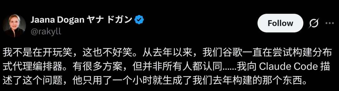 不止他,Google 首席『工程师』Jaana Dogan、Vercel 的 CTO 也纷纷点赞,说 AI 一小时能搞定团队半年的活,软件生产成本都快趋近于零了。