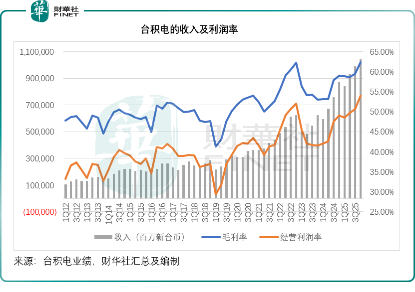 全年来看,台积电的2025年股东应占净利润为1.72万亿新台币,按年增长46.42%,股本回报率(ROE)为35.4%,按年提升5.1个百分点。