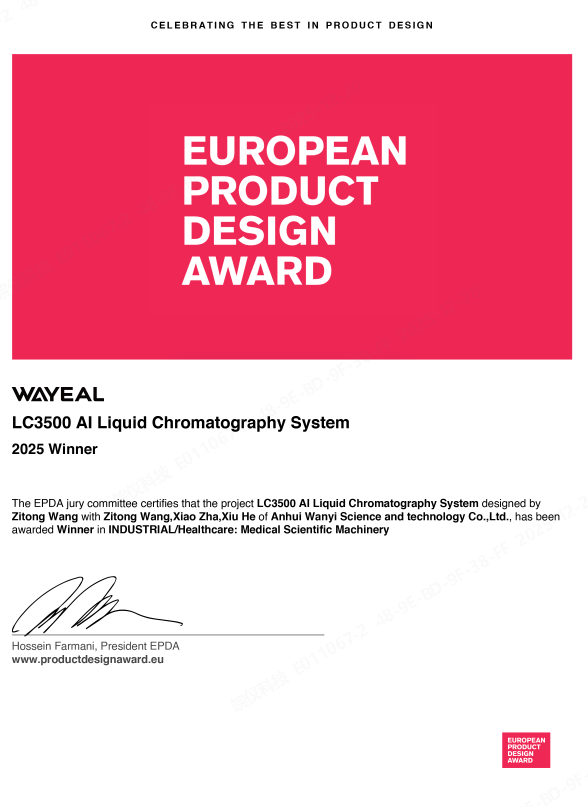 2025年12月22日,安徽皖仪科技股份有限公司(以下简称“皖仪科技”)宣布,其LC3500液相色谱系统凭借卓越的综合实力,成功摘得2025年欧洲产品设计奖(European Product Design Award)。这一成就成为中国高端分析仪器在本年度国际奖项评选中的重要里程碑,不仅体现了产品在性能与设计方面的突出表现,也标志着欧洲市场对皖仪科技品牌的高度认可,为中国分析仪器拓展全球高端市场注入新动力。