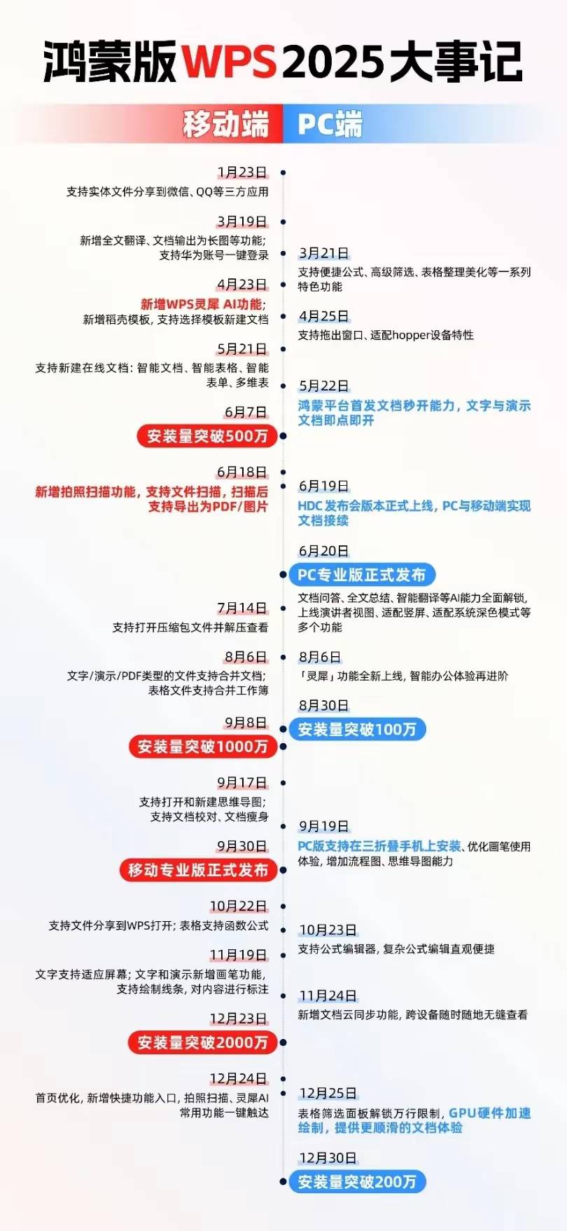 2025年,鸿蒙版WPS用一连串丰富的更新记录和亮眼的数据,证明了国产软件与国产操作系统能够在办公领域实现完美契合。