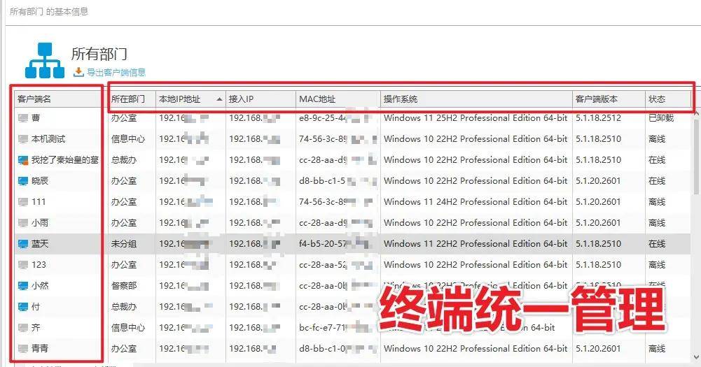 它能实现有一个管理端就能同时管控所有客户端,清点资产时不用再逐个部门对接,直接在管理端就能统筹查看。