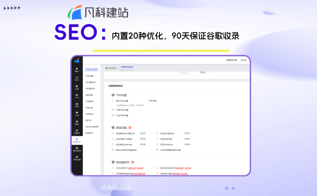 核心优势:丰富强大的SEO功能,保证百度与谷歌收录;内置AI系统,AI智能写作、AI批量生成全站及页面TDK、AI智能翻译。