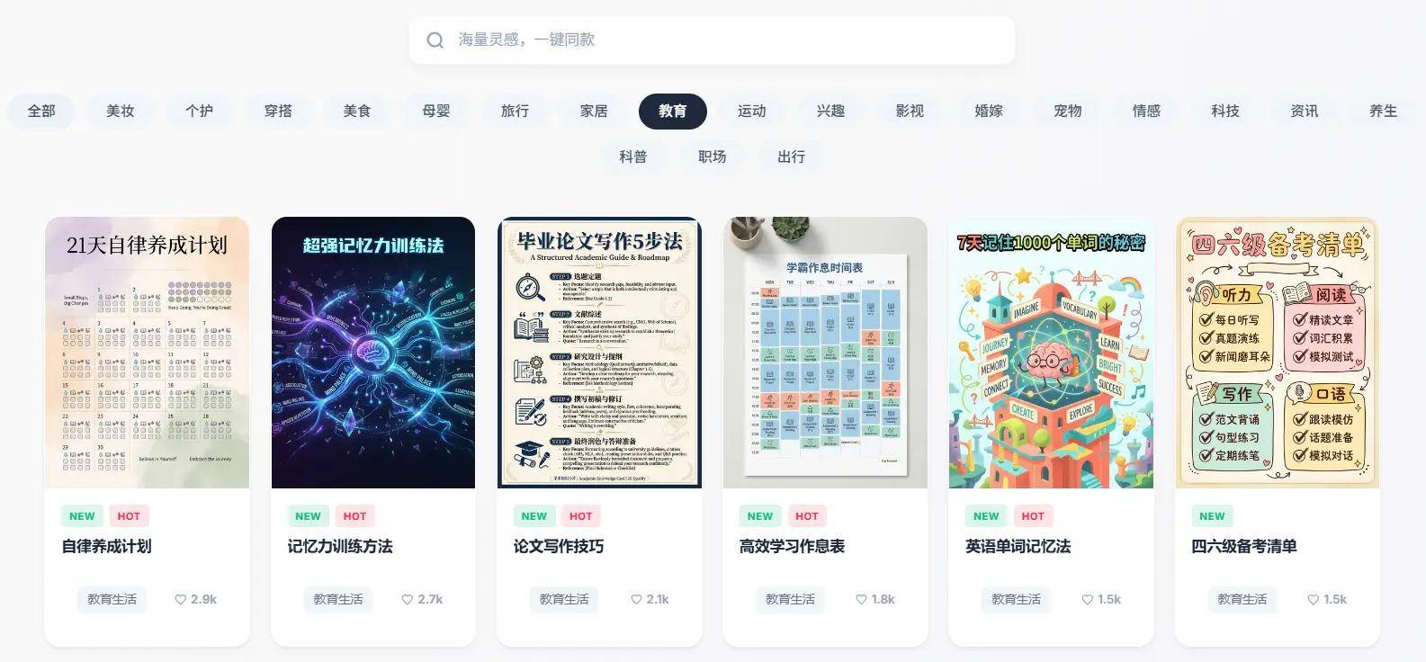 ▶ ・海量模板选择:覆盖30+行业赛道,美妆、『穿搭』、职场、母婴等品类都有专属模板,模板自带适配的标题框架、正文结构和排版样式,不用自己琢磨排版逻辑,套用后稍作修改就能用,比手动排版节省40分钟/篇,新手也能做出质感图文。