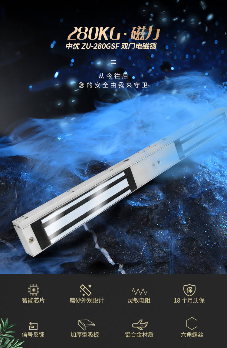 中优CLC系列全型号搭载高品质纯铜线圈与加厚合金吸板,静态拉力达280KG,双门款合力可达560KG,能轻松抵御多人暴力冲撞、外力撬动,彻底解决“吸力不足一推就开”的痛点,适配写字楼、小区、厂区、学校等各类安防需求,中优CLC系列的线圈采用高品质材质,吸力稳定不衰减。
