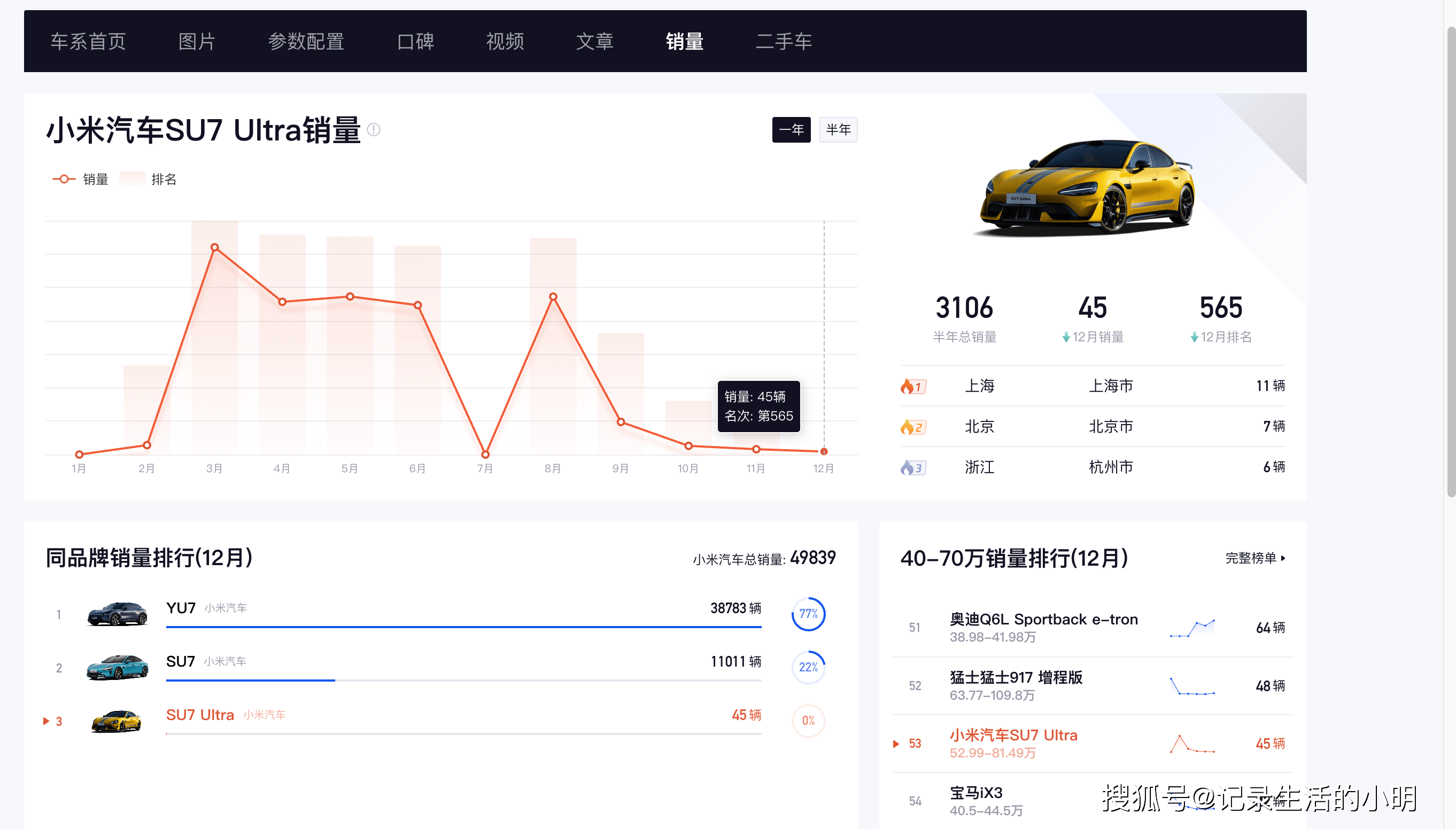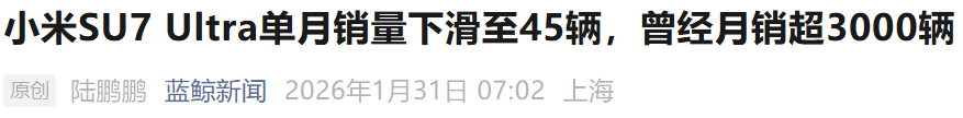 最近看到不少报道,都在说小米那台最贵的车——SU7 Ultra,好像卖不动了。有数据说它12月份只卖了45台。