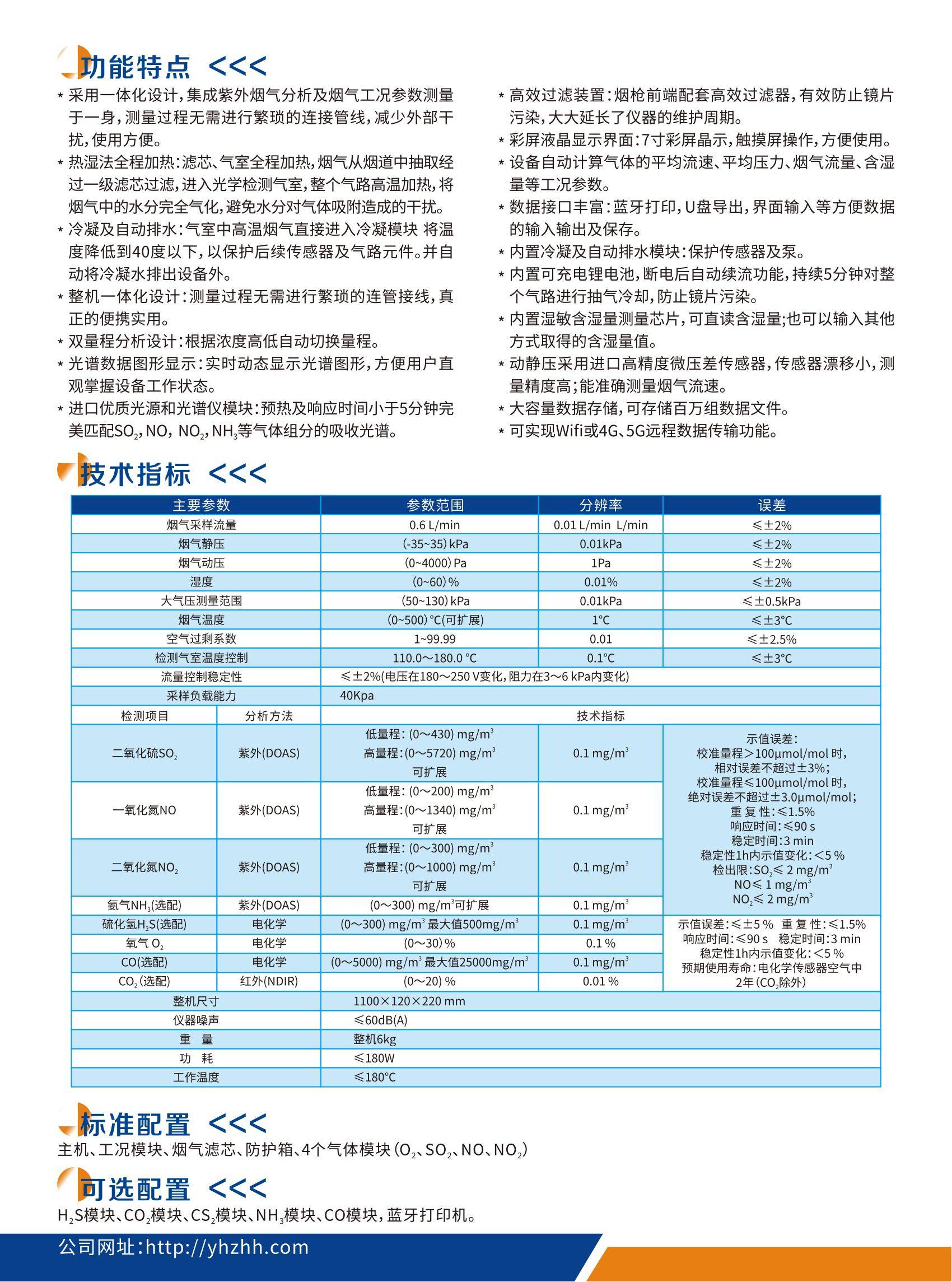 宇华智环的热湿法紫外烟气分析仪和紫外烟气综合分析仪具有诸多独特的特点。以其低浓度烟尘烟气分析仪为例,该设备设计为华志机取样管结构,使用时通过伴热软管连接,运输时可分离,自由组合,使用起来十分方便。主机内置烟温及动静压接口可连接对应烟枪或者组合皮托管测量烟温及动静压,动静压采用进口高精度微压差传感器,传感器漂移小,保证了测量的准确性。整个气路除连接部位外均采用聚四氯乙烯管路,避免气体吸附,采用进口传感器,响应速度快,延迟低,能匹配多种气体组,双量程分析设计,可根据实际情况自动或手动输入含湿量值。此外,主机还可自动计算气体的平均流速、平均压力、烟气流量、含湿量等工况参数,自动计算过剩空气指数、燃烧效率和排放量,并且具备自动清洗功能,停止采样后持续5分钟对整个气路进行清洗,防止气室污染。