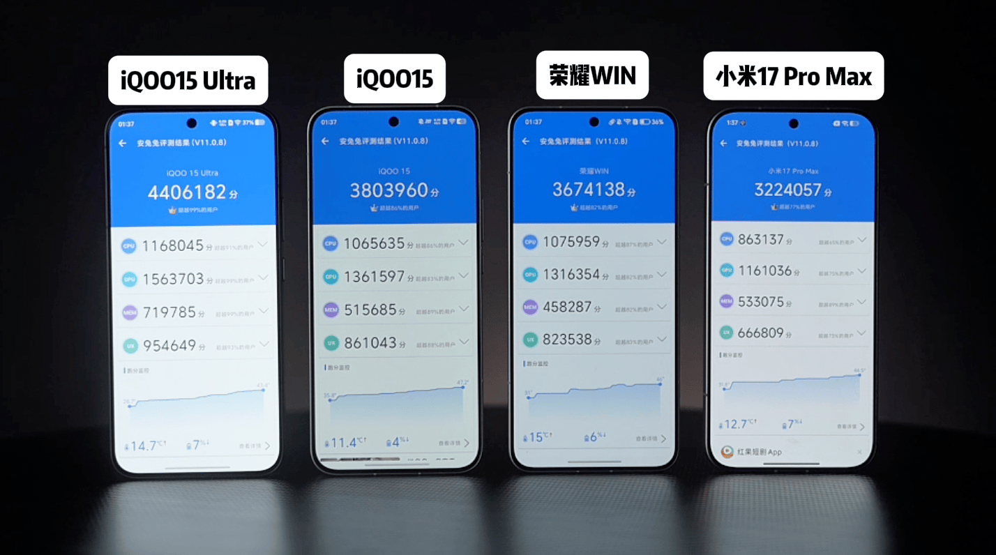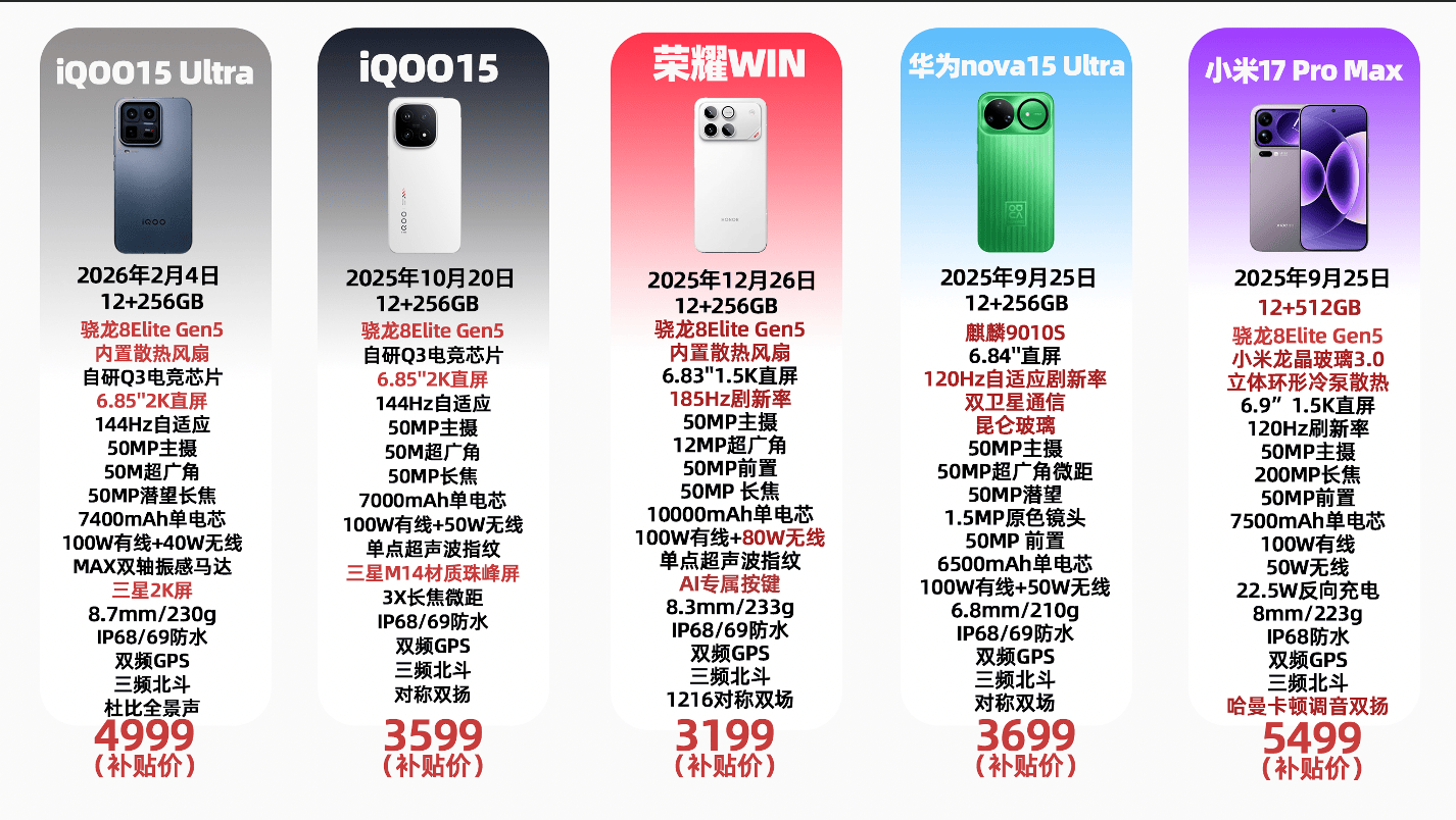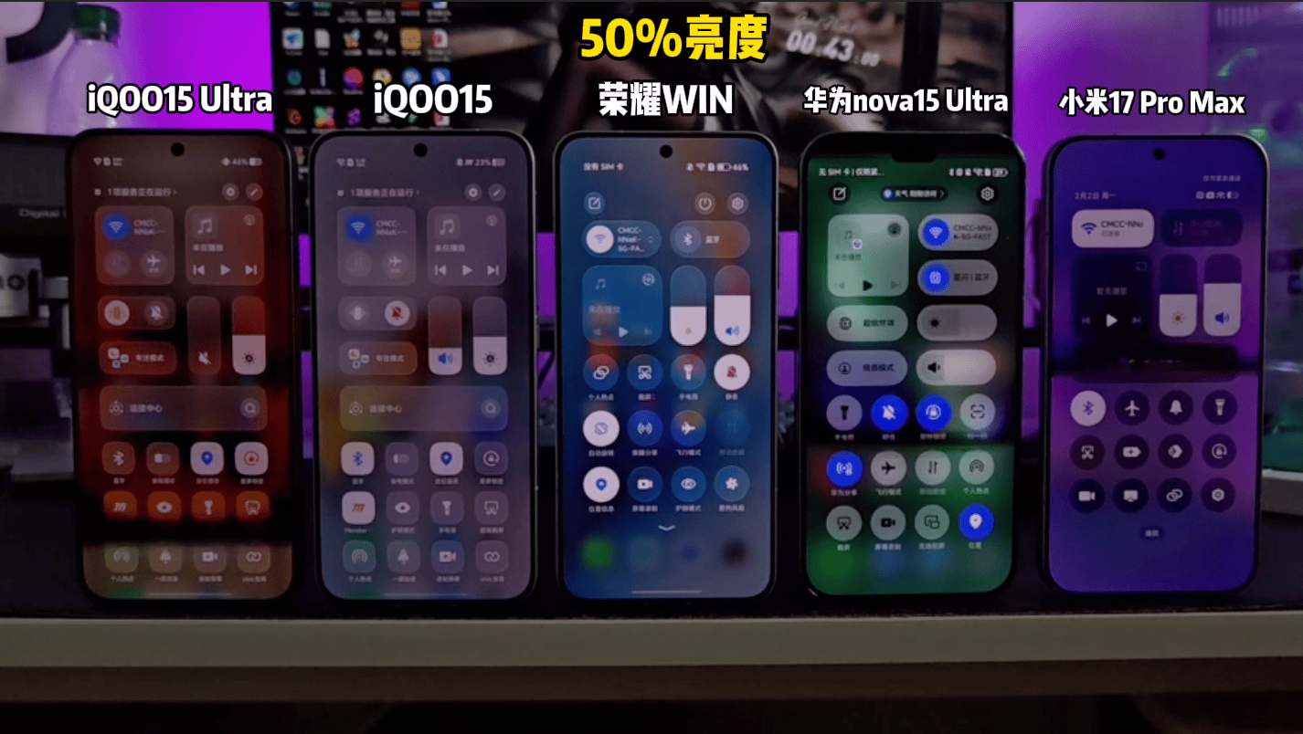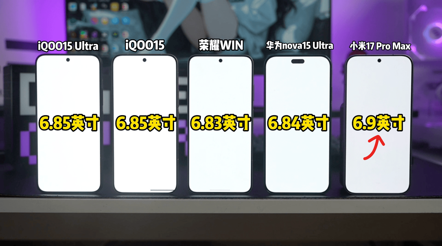 对比机型:iQOO15、荣耀WIN、华为nova15 Ultra、小米17 Pro Max。