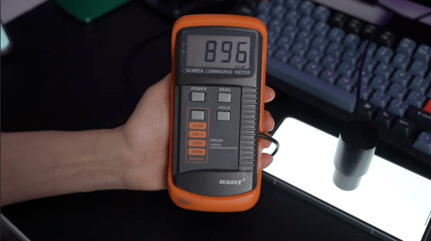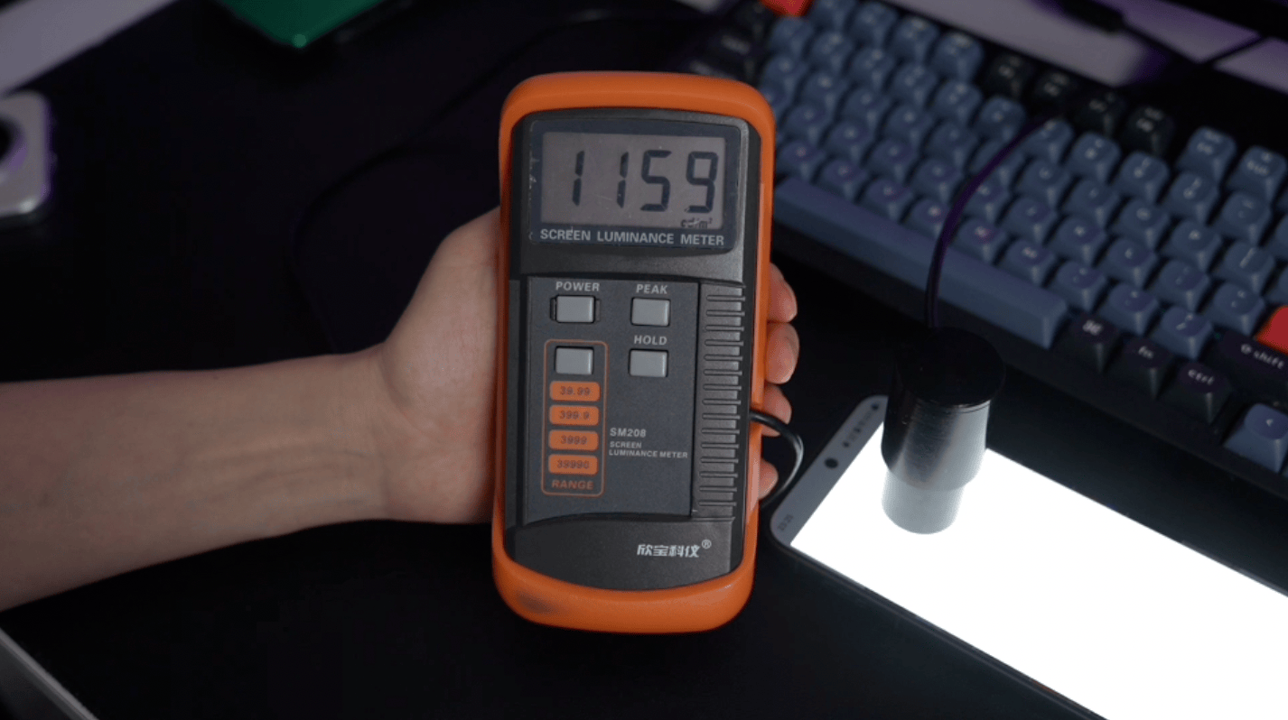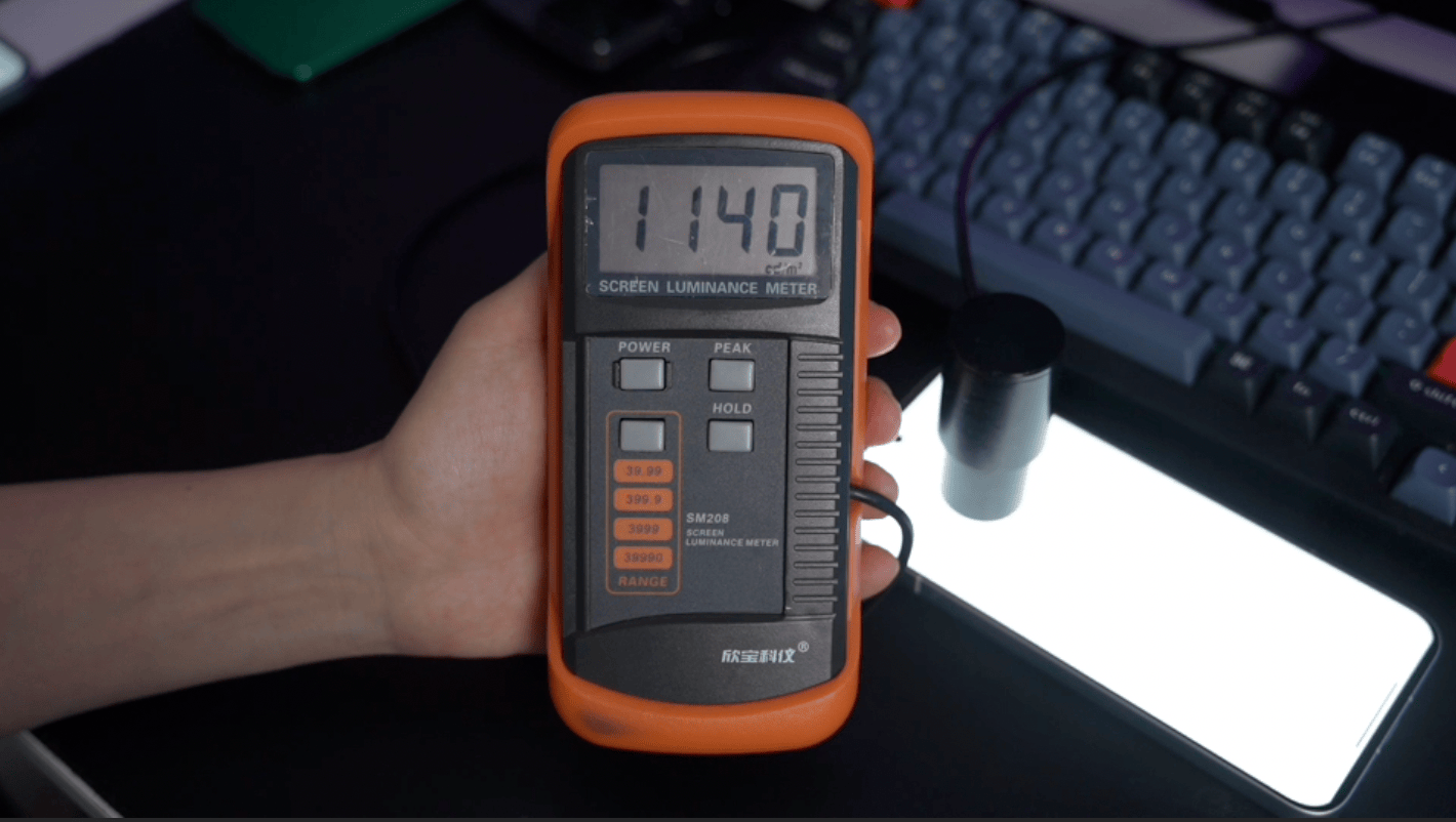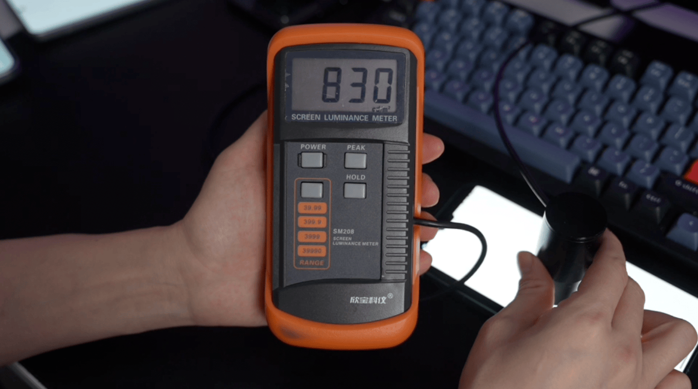 用亮度仪测试最大亮度。这玩意我800块买的,要个免费的赞不过分吧?!