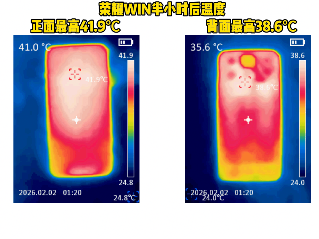 正面最高温度41.9℃,背面最高温度38.6℃。