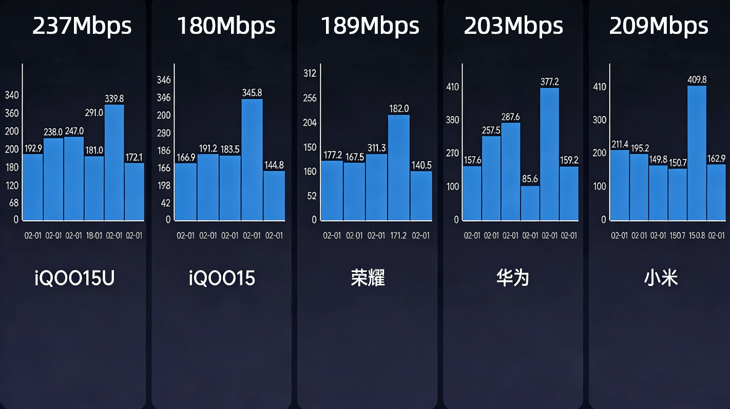 七遍网速的平均帧率,第一名是iQOO 15 Ultra,237Mbps