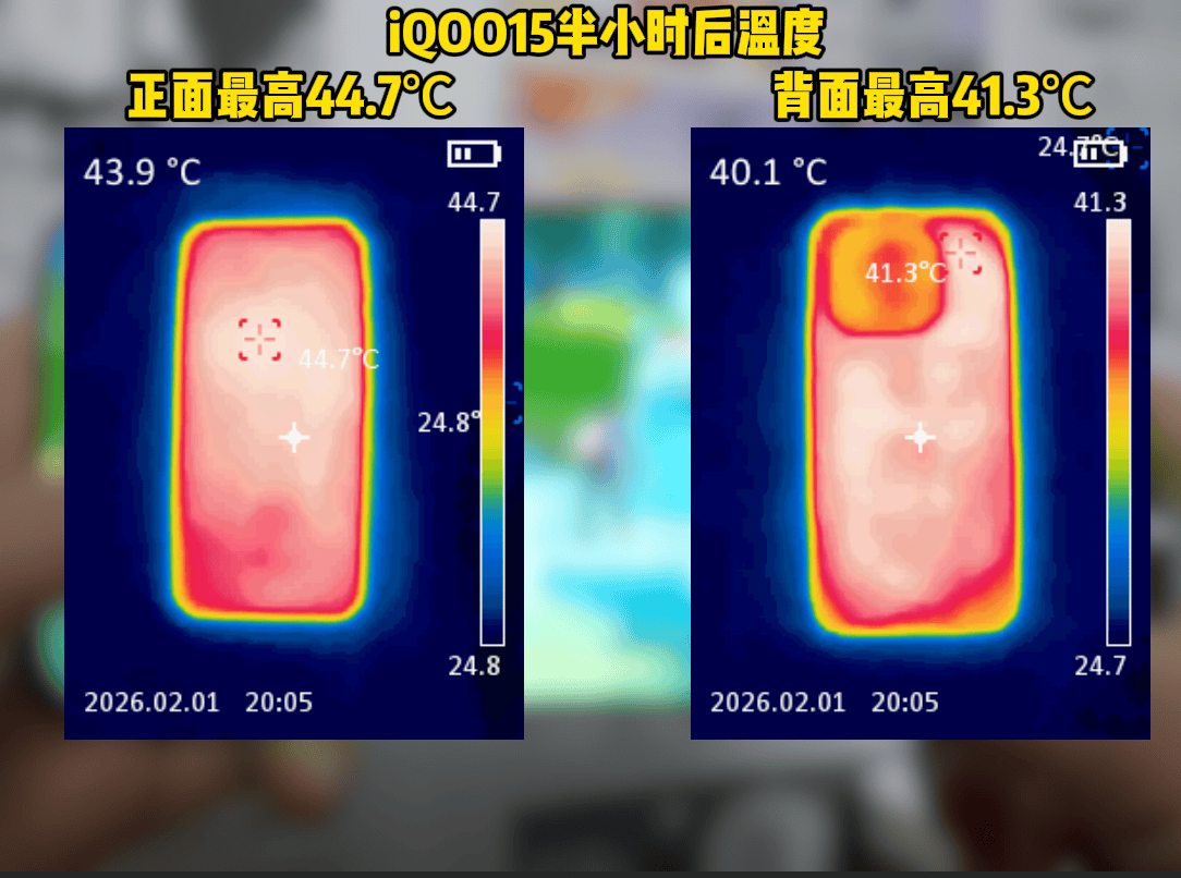 正面最高44.7℃,背面最高41.3℃。在关闭超分超帧的状态下,帧率、功耗和温控,还是没有特效全部拉满的iQOO15 Ultra强,可见这代的提升确实很猛。