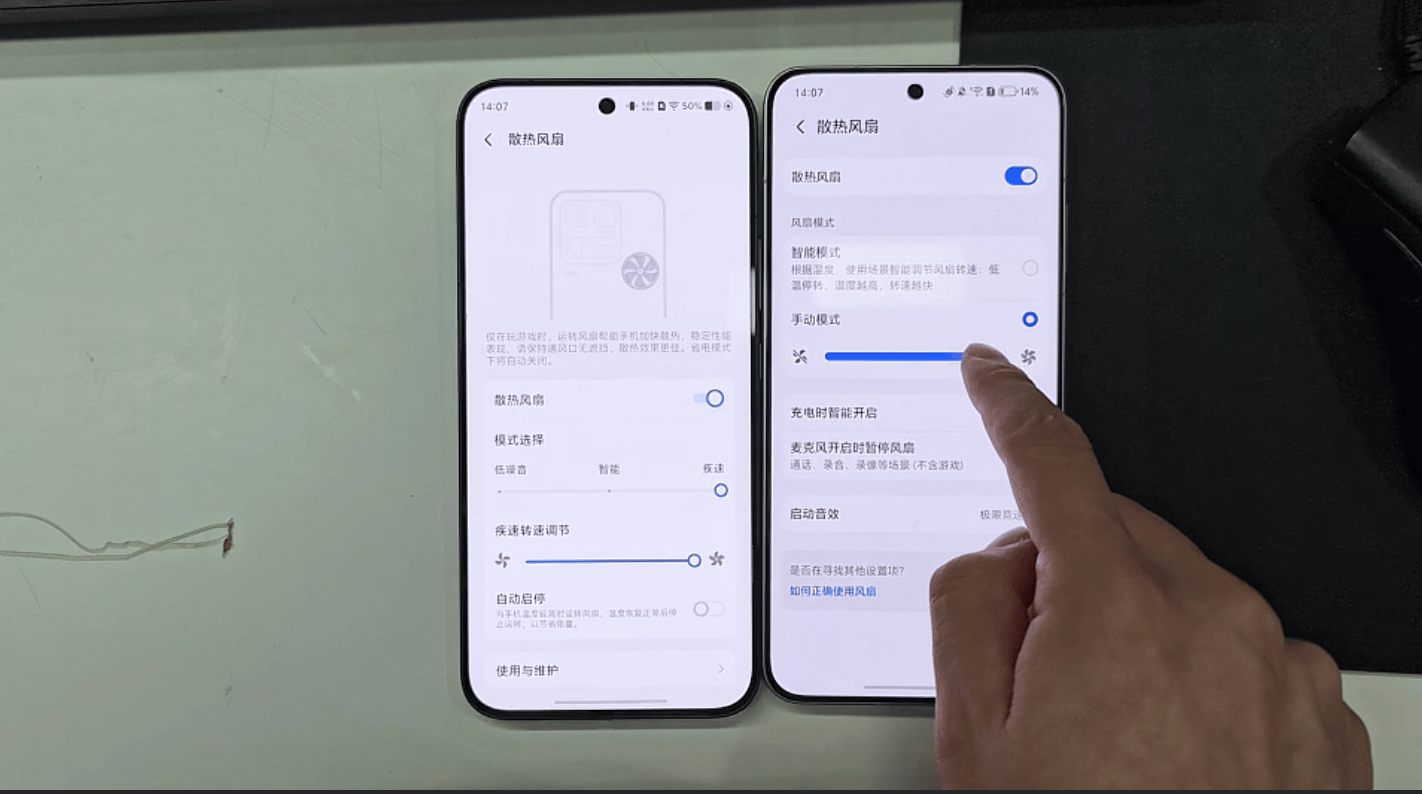 iQOO噪音更大。当然两款手机的风扇均支持多档调节,在意噪音可以调低档位。