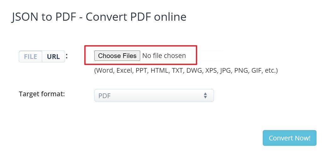 1、在浏览器搜索 Json to PDF,选择一个在线转换网页进入。接着添加 Json 文件,然后选择 PDF 再点击转换。