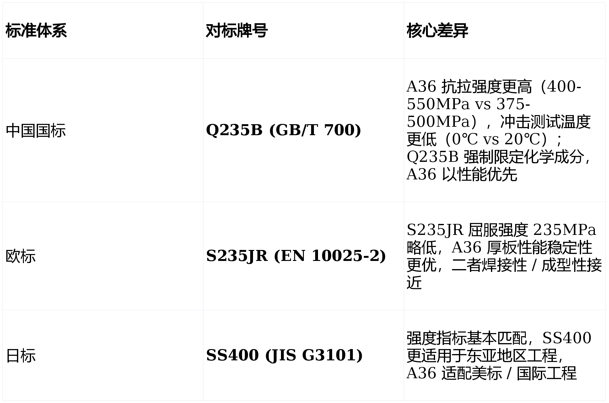 - 性能优先,适配性强:美标不强制限定成分,厂家可通过工艺调整满足性能,厚板 / 异形件性能稳定性更优
