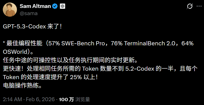 Opus 4.6发布后没几分钟,OpenAI紧急掏出GPT-5.3-Codex。