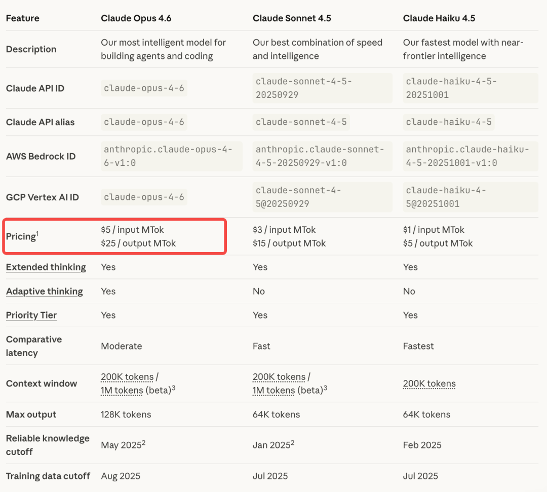 在API定价方面,Claude Opus 4.6输入价格5美元💵/百万token,输出价格25美元💵/百万token。