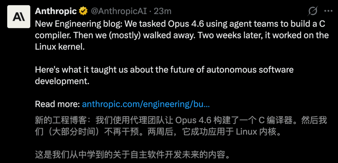 这不,Anthropic打了个样,让Opus 4.6智能体群打造出一款C编译器,人类只「旁观」几乎不干预。
