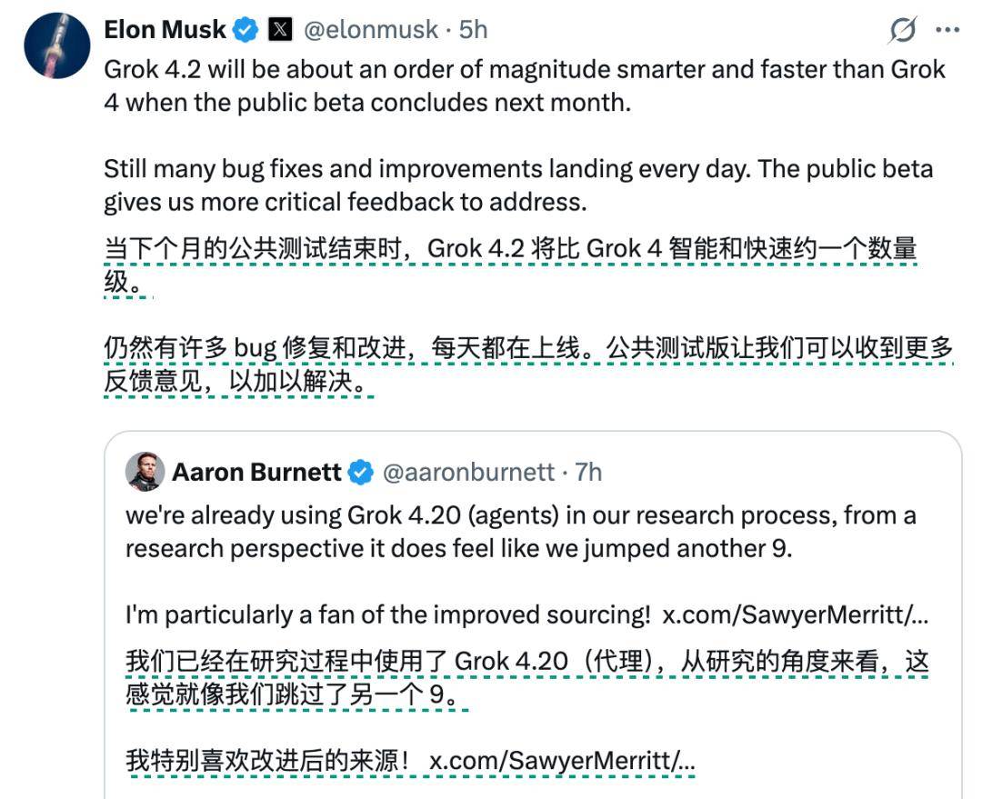 我们 Grok 4.2 还是个宝宝,后面每周会更新,等着瞧吧!