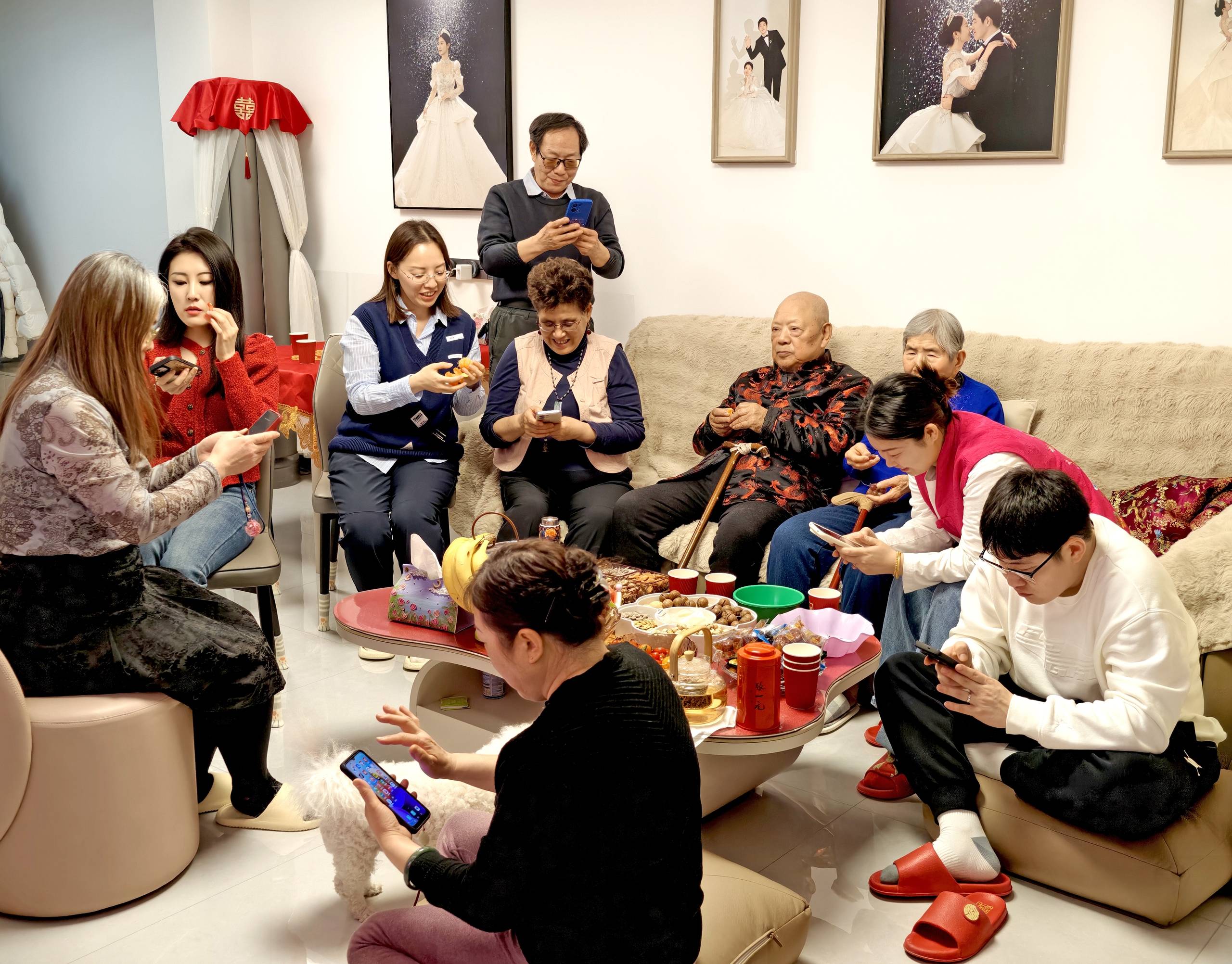 ▲2月16日除夕夜,北京某市民一大家,围坐在电视机📺️前看春晚、抢红包🧧。图/IC photo