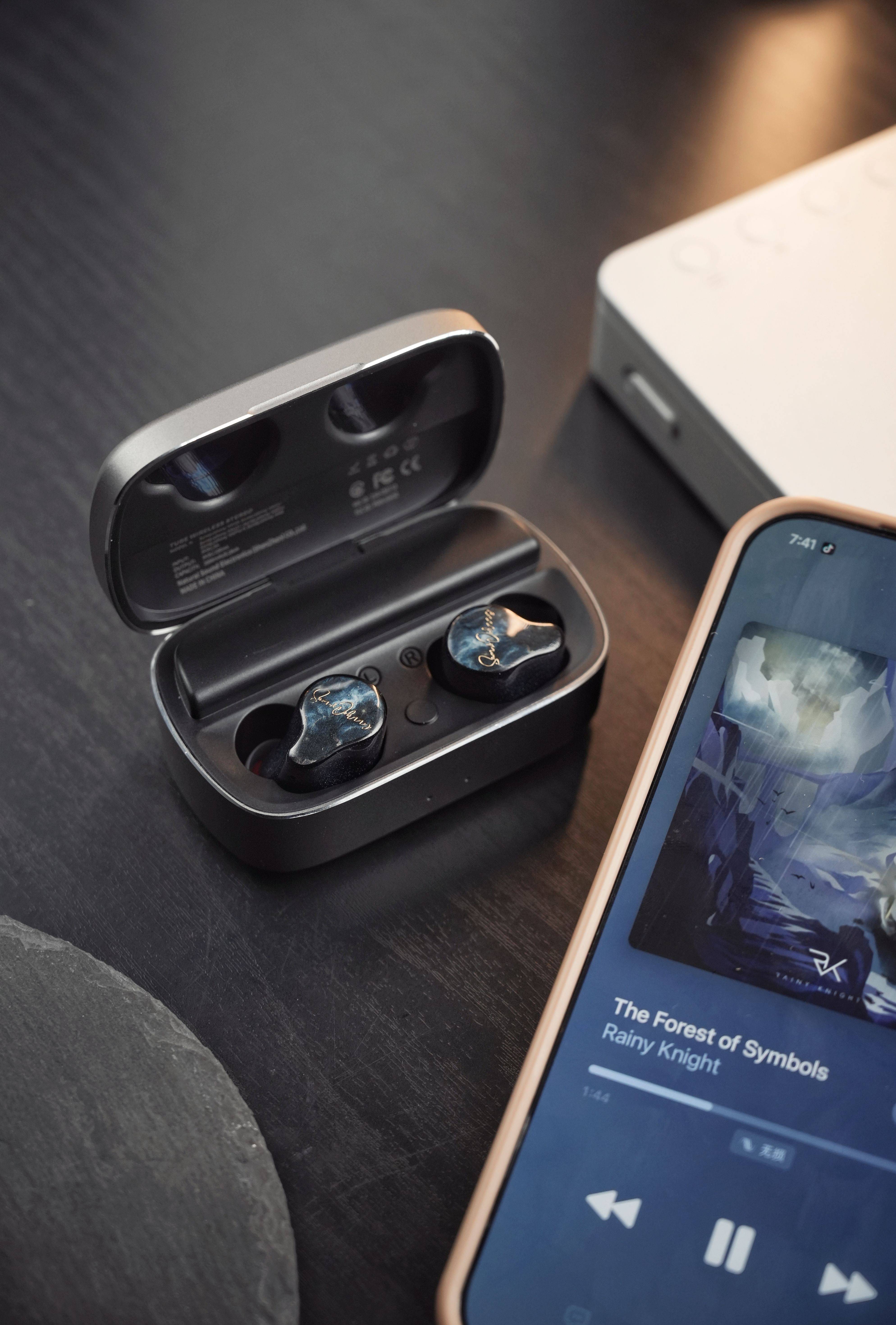 例如HM10这个型号,定价2699,配置为1圈2铁1平板,看起来比同价位有线耳机还香,并且蓝牙方案的技术应用、调教打磨更费成本。HM10的充电仓外壳是纯金属,厚实,虽然有些重量但质感比塑料好很多,并且它里面的电池续航可以达到200小时,挺夸张。耳机腔体虽然是多单元,但比一些有线耳机还小巧,单次也能保证7小时的续航。关于降噪,目前绝大多数纯HiFi向蓝牙耳机都不带主动降噪,但因为这个类公模设计具备很顶的贴合度,被动隔音这一块就够用了。